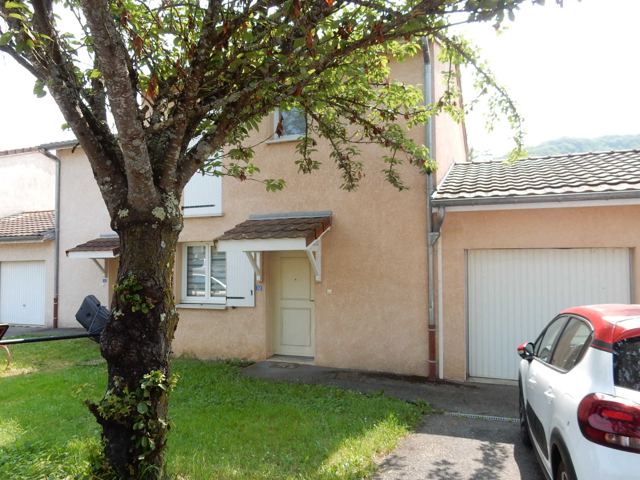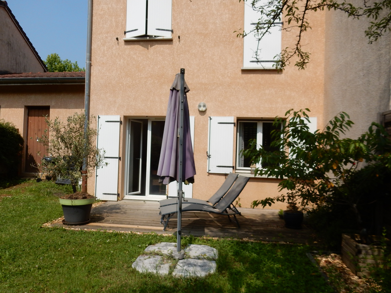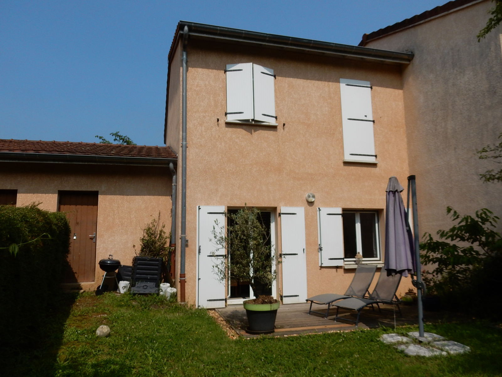 Valserhône (01200)Située à proximité du centre ville et des écoles, au Clos Saint Nicolas avec accès sécurisé et clos (par digicode), jolie villa jumelée en ½ niveau de type 4 de 83m²hab comprenant une cuisine équipée indépendante, un séjour/salon donnant sur le jardin (80m²) clos, 3 chambres, sdb, toilette, cellier, garage (21m²), le tout sur un terrain de 207m². Entièrement rénové. Belle exposition, calme. 10 minutes de la Gare TGV de Bellegarde/Valserine.