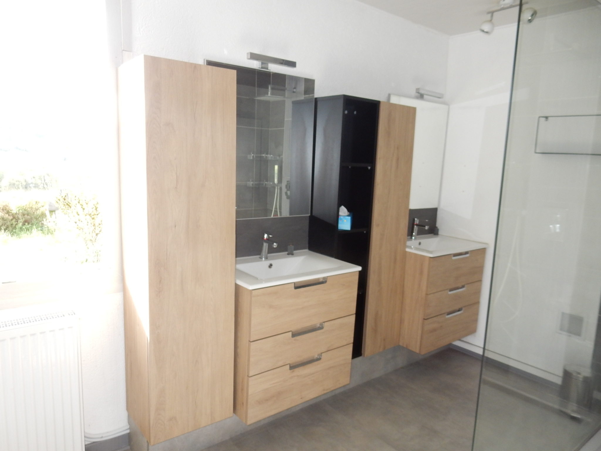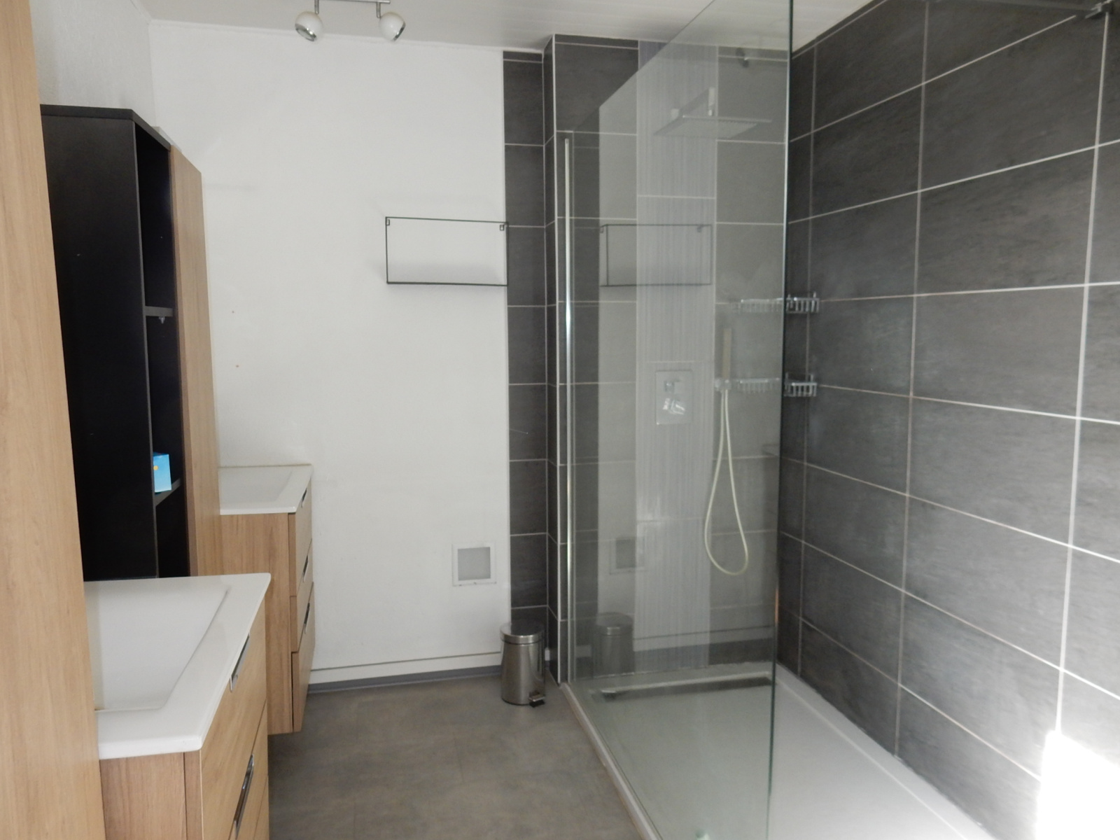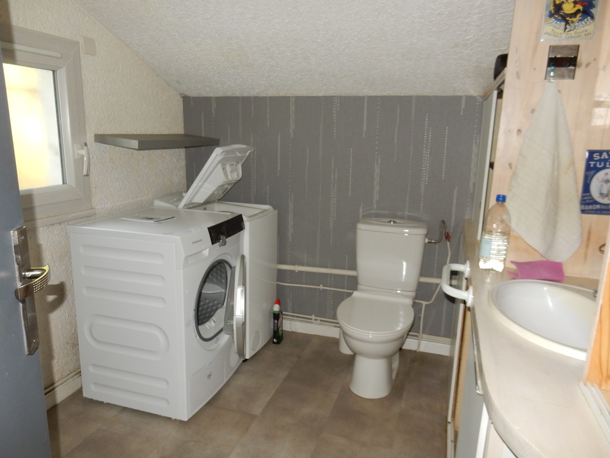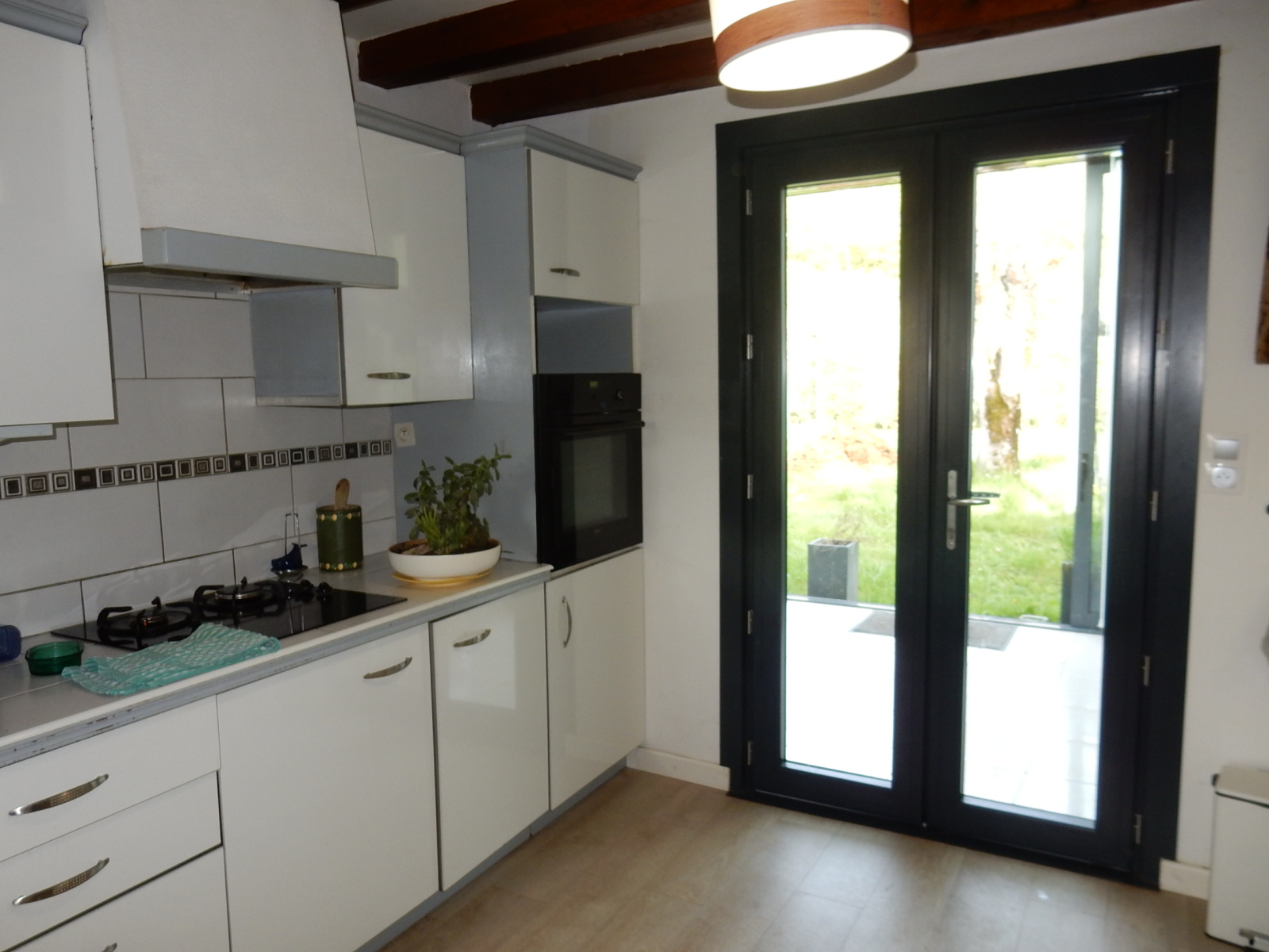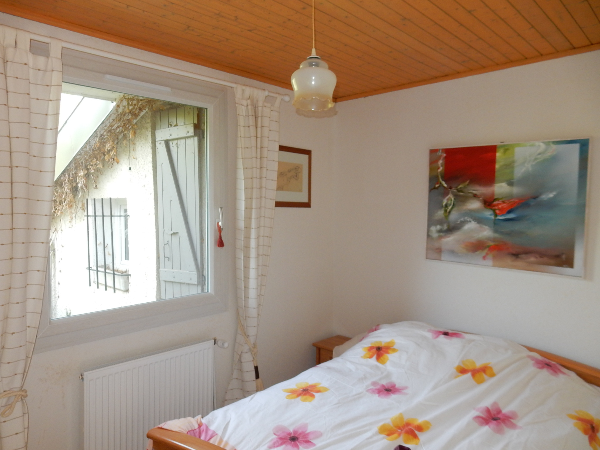 Valserhône (01200)Située à 4 km de Bellegarde et gare TGV, dans un Hameau, Villa de Plain Pied, jumelée (1 côté) de type 5 de 132m²hab, comprenant une cuisine équipée, un salon/séjour avec cheminée, un bureau, 3 chambres, une salle de douche (8.5m²), un toilette + buanderie, une Véranda (18m²). Dépendances extérieures : un Atelier, un abri jardin, le tout sur 878m² de terrain clos. Vue dégagée, très calme. Assainissement type fosse septique à mettre aux normes. Chauffage Pompe à Chaleur (Air/Eau) + Cheminée. Panneaux solaires photovoltaïques.