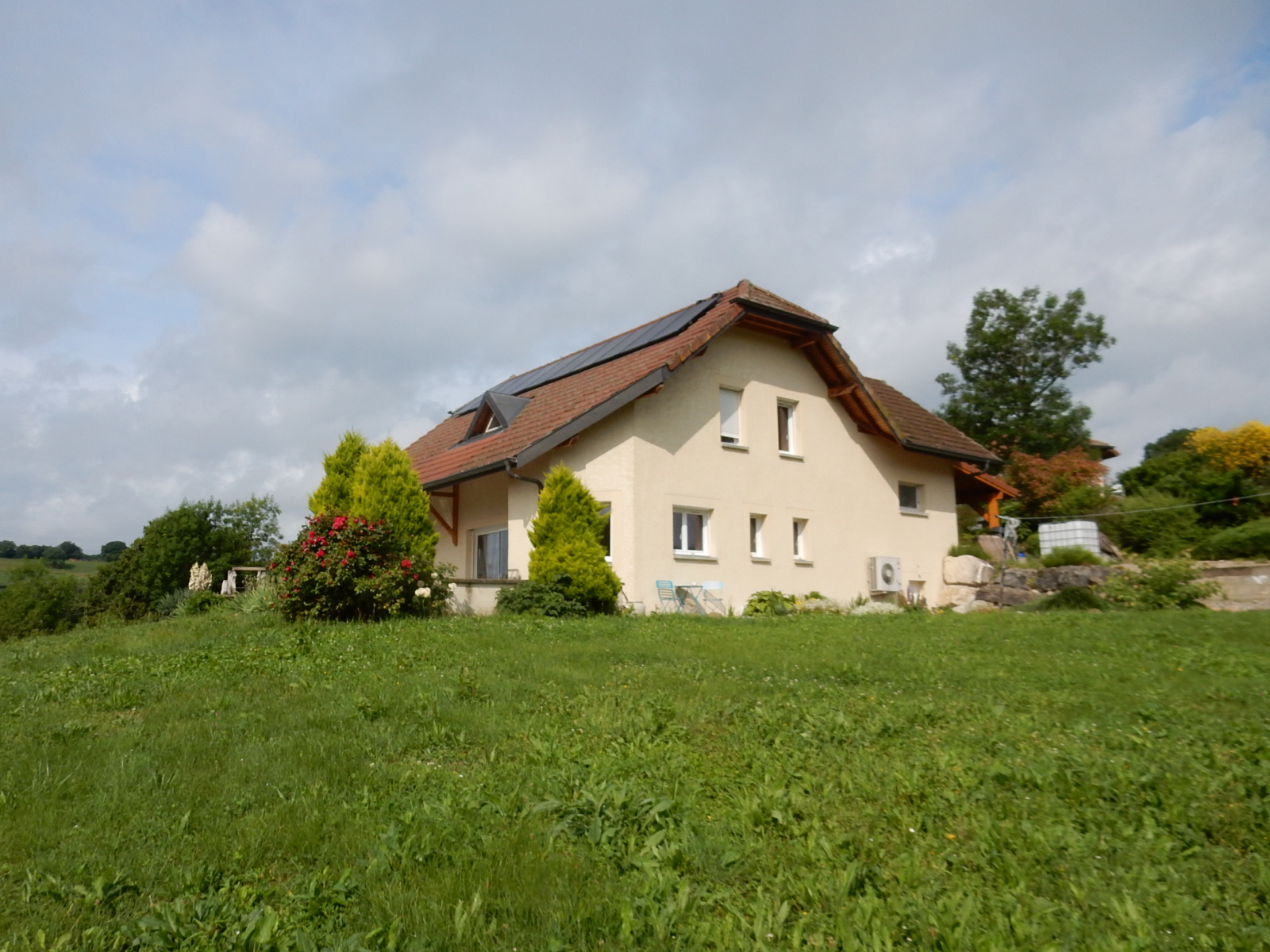 Chêne-en-Semine (74270)Située Sur la commune de Chêne-En-Semine 74270, à proximité de l’entrée d‘autoroute A40 Eloise, jolie Villa d’architecte en ½ niveau de type 5 d’environ 140m²hab, comprenant une cuisine équipée ouverte sur le salon/séjour avec Cheminée donnant sur une terrasse de 65m², un bureau, un toilette, une buanderie+local technique, à l’étage : 4 chambres, une salle de bain, un toilette, un garage + abris voiture agrémentent ce bien. Le tout sur 4 210m² de terrain arboré. Très calme, vue sur les alpes et la Tournette. Chauffage : Pompe à Chaleur, panneaux photovoltaïques en auto consommation. 15 minutes gare TGV de Bellegarde/Valserine.