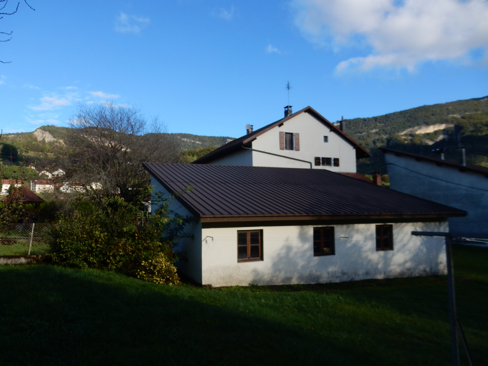 Champfromier (01410)Située à 15 km de Bellegarde et gare TGV, à Champfromier (01410) à proximité des commerces, Bâtisse en Pierre (en copropriété) de type 7 de 250m² hab, comprenant deux cuisines (dont une équipée), deux salons, un séjour (38m²), 6 chambres, une salle de douche, toilette, Caves, Atelier, chauffage fuel (chaudière changée en 2018) + cheminée. Dépendances non attenantes : Garage (44m²), bûchers (45m²). le tout sur 1 682m² de terrain constructible. Possibilité de détacher une parcelle d'environ 500m². Gros potentiel à exploiter.