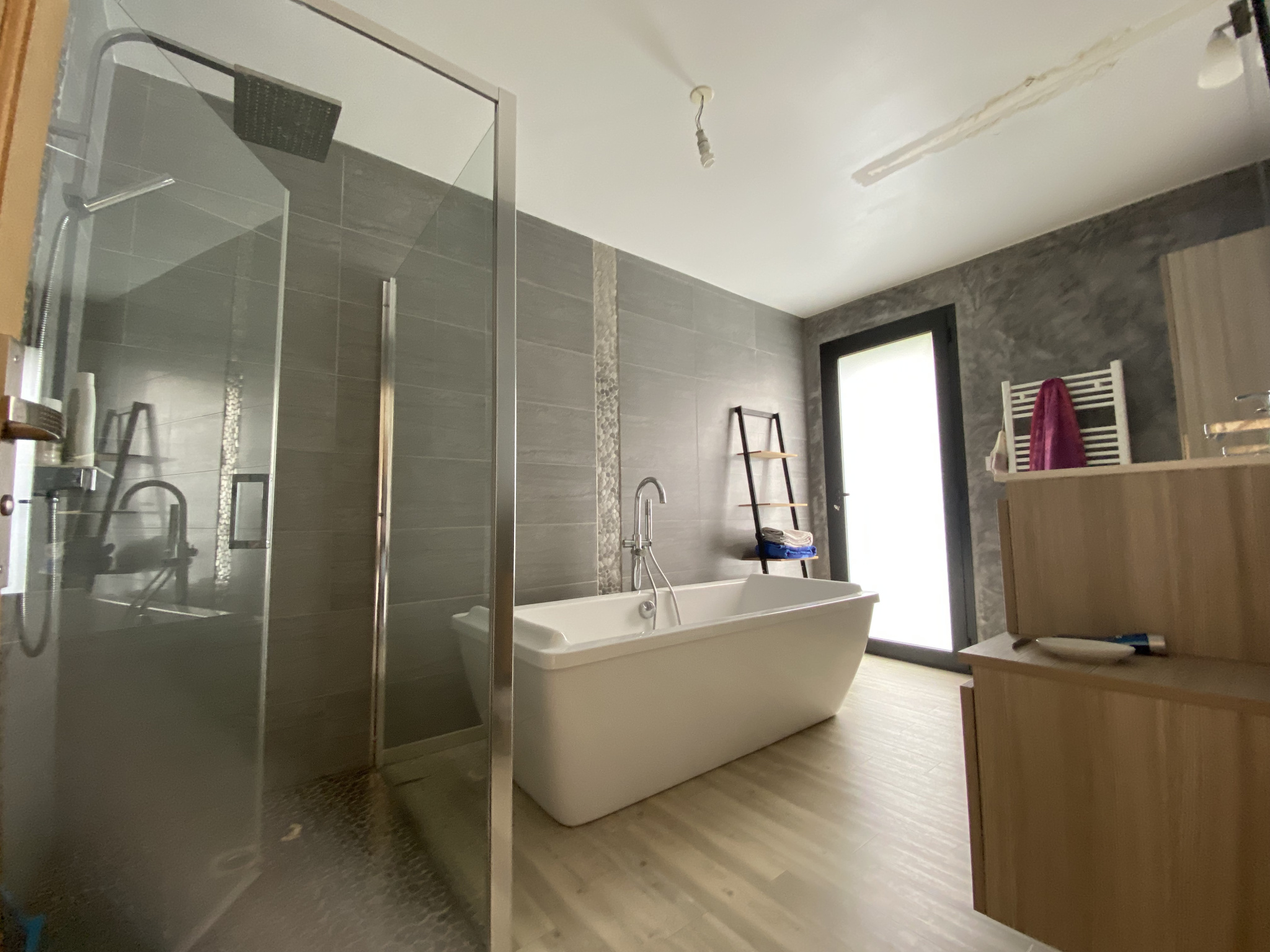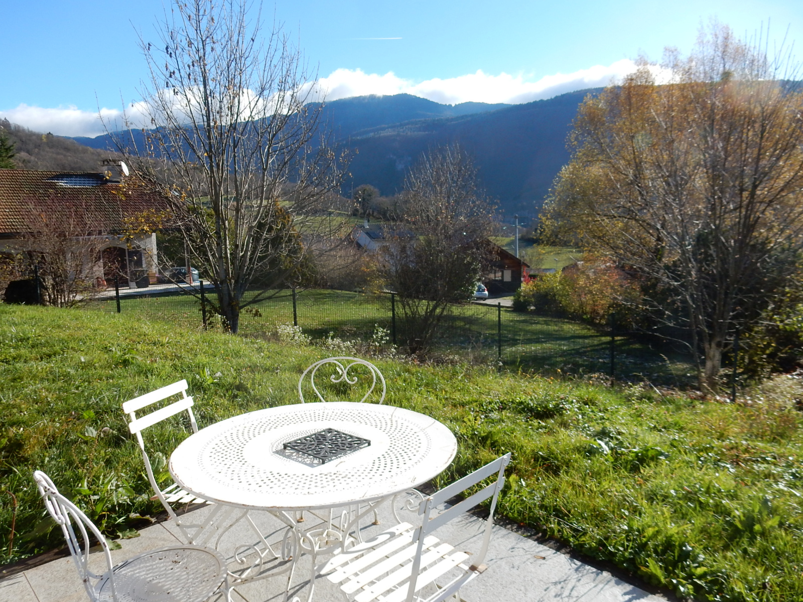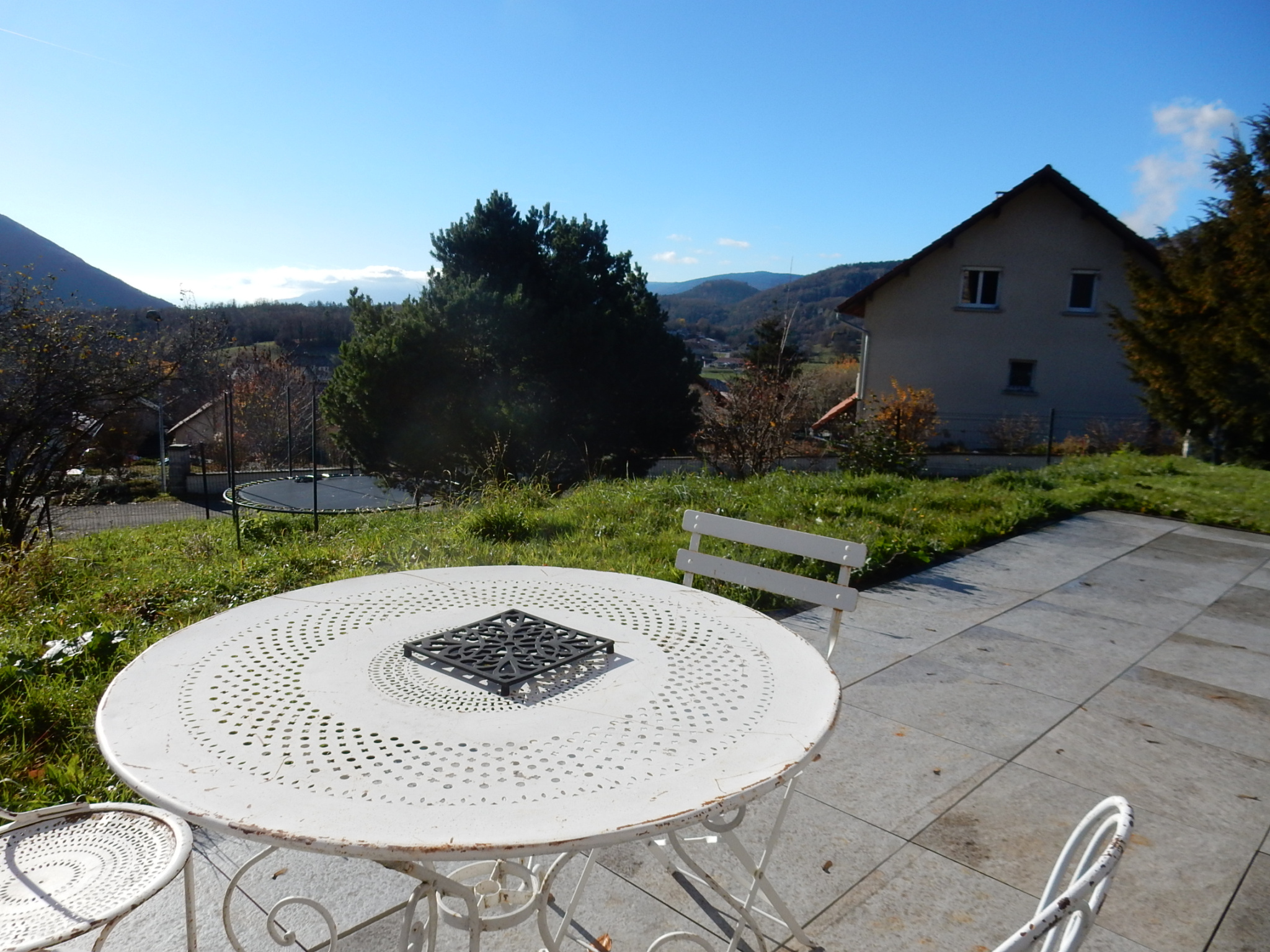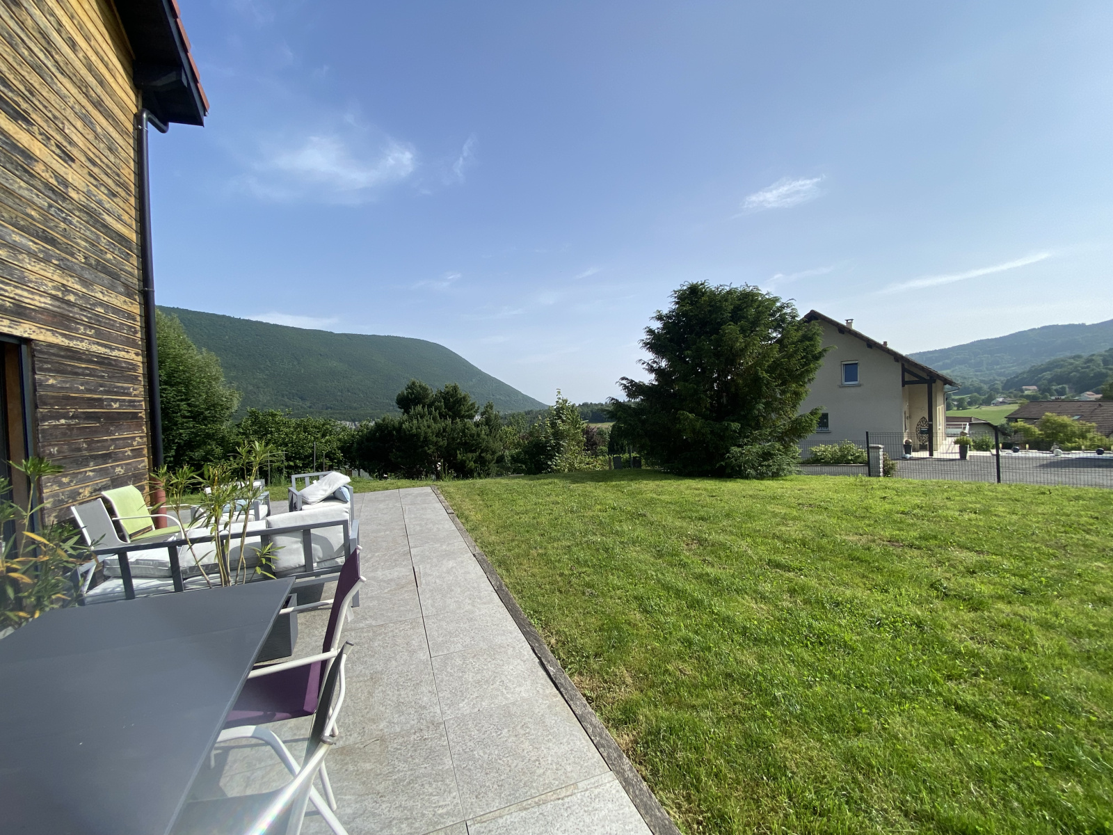 Champfromier (01410)Située à 12 km de Bellegarde et gare TGV, sur les hauteurs de Champfromier 01410, Jolie Villa Ossature Bois (2014) de type 6 de 167m²hab, comprenant en Rez-de-chaussée une cuisine équipée ouverte sur un salon/séjour (58m²) avec poêle à Granules, 2 chambres dont une parentale avec salle de baignoire, douche et dressing, un toilette, cellier/Buanderie, à l’étage mezzanine, 2 chambres, une salle de douche, toilette et une salle de jeux (43m²) à exploiter. Garage, Terrasse. Très belles prestations. Le tout sur 1003m² de terrain clos. Très belle vue dégagée. Très Calme, à proximité des commerces.